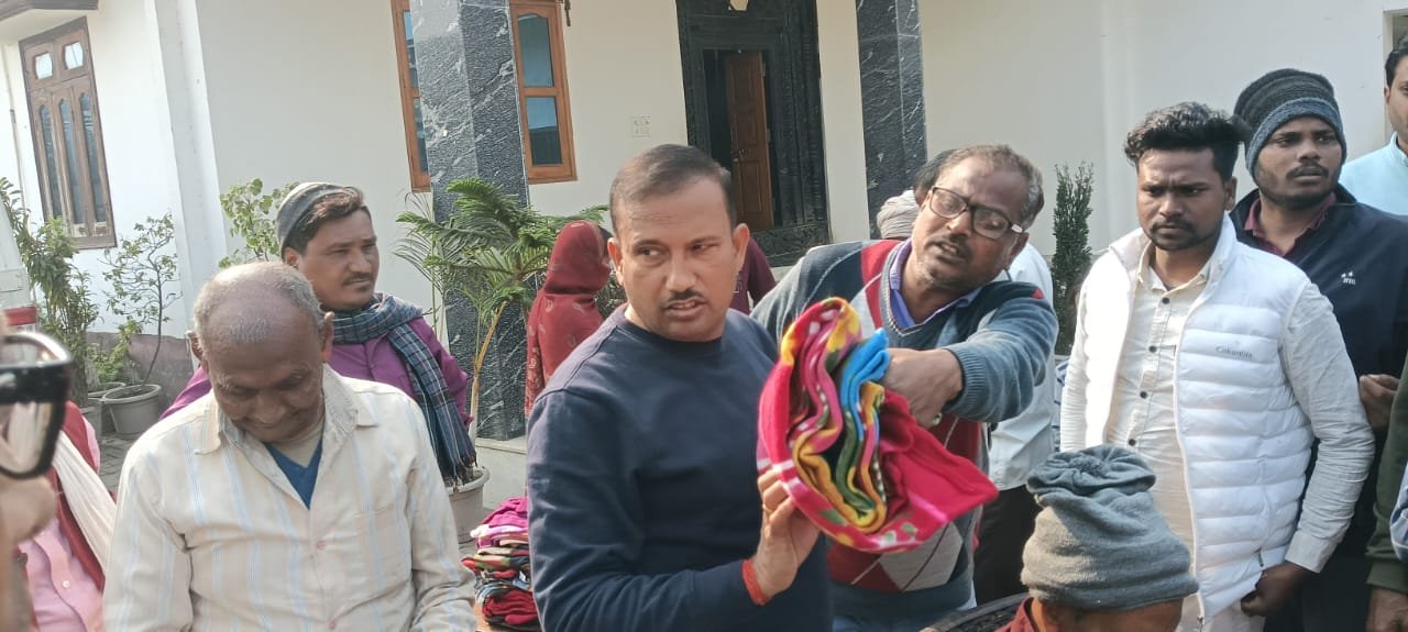 क्षेत्र में शीतलहर को देखते हुए बेसिक शिक्षाधिकारी डॉ. गोरक्षनाथ पटेल के अनुज राजकुमार पटेल द्वारा गुरूवार को राजपुर मुड्ली अपने आवास पर सैकड़ों जरूरतमंदों के बीच कंबल वितरण कार्यक्रम का आयोजन किया। इस दौरान ठंड से प्रभावित गरीब, असहाय और जरूरतमंद लोगों को कंबल वितरित किए गए।