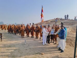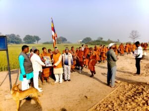 देवदह पहुँचने पर समिति की ओर से भिक्षुओं के लिए चाय-नाश्ते की व्यवस्था की गई। इसके बाद सभी भिक्षु देवदह स्थित प्राचीन स्तूप पर पहुँचे, जहां सामूहिक रूप से त्रिशरण और पंचशील का पाठ करते हुए विश्व शांति के लिए मंगलकामना की गई। वातावरण “बुद्धं शरणं गच्छामि” के उच्चारण से गूंज उठा, जिससे पूरा क्षेत्र आध्यात्मिक ऊर्जा से भर गया। देवदह रामग्राम बौद्ध विकास समिति के अध्यक्ष जितेंद्र राव ने विदेशी भिक्षुओं को देवदह और रामग्राम के ऐतिहासिक एवं पौराणिक ऐतिहासिक धर्मिक महत्व से अवगत कराया। बताया गया कि देवदह शाक्य कुल से जुड़ा वह पावन स्थल है, जहां भगवान बुद्ध का मातृकुल निवास करता था। यही वह भूमि है, जहां से करुणा, अहिंसा और समता का संदेश विश्वभर में प्रसारित हुआ। रामग्राम स्तूप को भी बुद्ध के अस्थि अवशेषों से जुड़ा महत्वपूर्ण स्थल बताया गया, जिसकी ऐतिहासिक मान्यता अंतरराष्ट्रीय स्तर पर है।