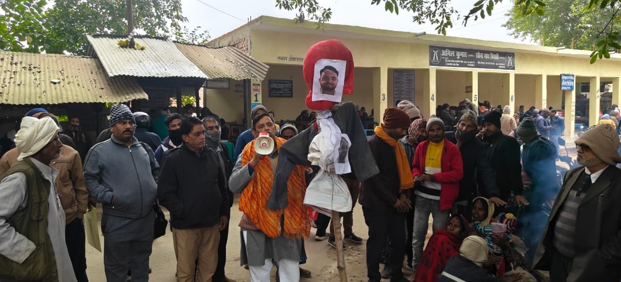 किसान नेता श्री शुक्ल ने कहा कि उपनिबंधक कि भ्रष्टाचार के विरोध में प्रथम चरण के आंदोलन जहां 46 दिन चले थे और जिलाधिकारी महराजगंज संतोष कुमार मिश्रा द्वारा अनशन स्थगित कराया गया था बावजूद स्थानांतरण में होने पर अधिवक्ता नागेंद्र प्रसाद शुक्ल ने द्वितीय चरण का आंदोलन शुरू किया और आज 75 दिन पूरा होने पर उपनिबंधकका पुतला जलाकर तहसील में नारेबाजी करते हुए कहा कि जिलाधिकारी महाराजगंज द्वारा उप निबंधक के खिलाफ एडीएम न्यायिक महराजगंज द्वारा जांच भी कराया गया परंतु अब तक शासन द्वारा स्थानांतरण में होने से जहां सरकार की छवि धूमिल हो रही है कोई आम जनमानस में उपनिबंधक के विरुद्ध तमाम तरह की चर्चा सुनने को मिल रहा है।