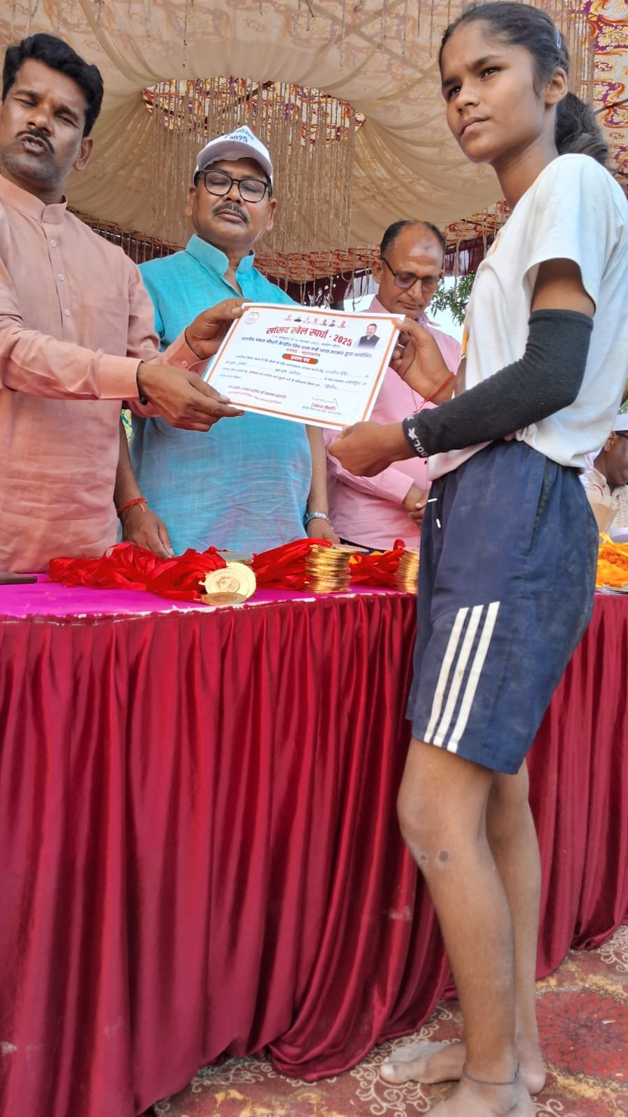 विजेता एवं उपविजेता टीमों को वरिष्ठ भाजपा नेता लाल चन्द चौधरी ने मेडल और प्रमाणपत्र प्रदान कर सम्मानित किया। उन्होंने खिलाड़ियों का उत्साहवर्धन करते हुए कहा कि ग्रामीण क्षेत्र की प्रतिभाएं भी किसी से कम नहीं हैं। यदि उन्हें सही मंच और अवसर मिले तो वे प्रदेश और देश स्तर पर अपना परचम लहरा सकती हैं।प्रतियोगिता के विभिन्न खेलों में छात्र-छात्राओं ने उम्दा प्रदर्शन किया। 100 मीटर दौड़ में रोशनी और उमा यादव ने बाजी मारी, जबकि 200 मीटर दौड़ में प्रिया और राधिका विजेता रहीं। वहीं 400 मीटर दौड़ में प्रीती और साधना ने प्रथम स्थान प्राप्त किया। प्रतियोगिता के दौरान छात्रों में गजब का जोश और प्रतिस्पर्धा देखने को मिली।