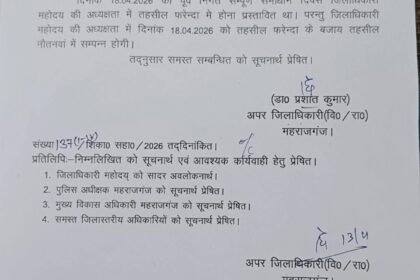 महराजगंज से श्रीनरायन गुप्ता प्रशासनिक व्यवस्था में बदलाव करते हुए 18 अप्रैल को आयोजित होने वाला संपूर्ण समाधान दिवस अब फरेन्दा के स्थान पर नौतनवा तहसील में आयोजित किया जाएगा। इस संबंध में संब...